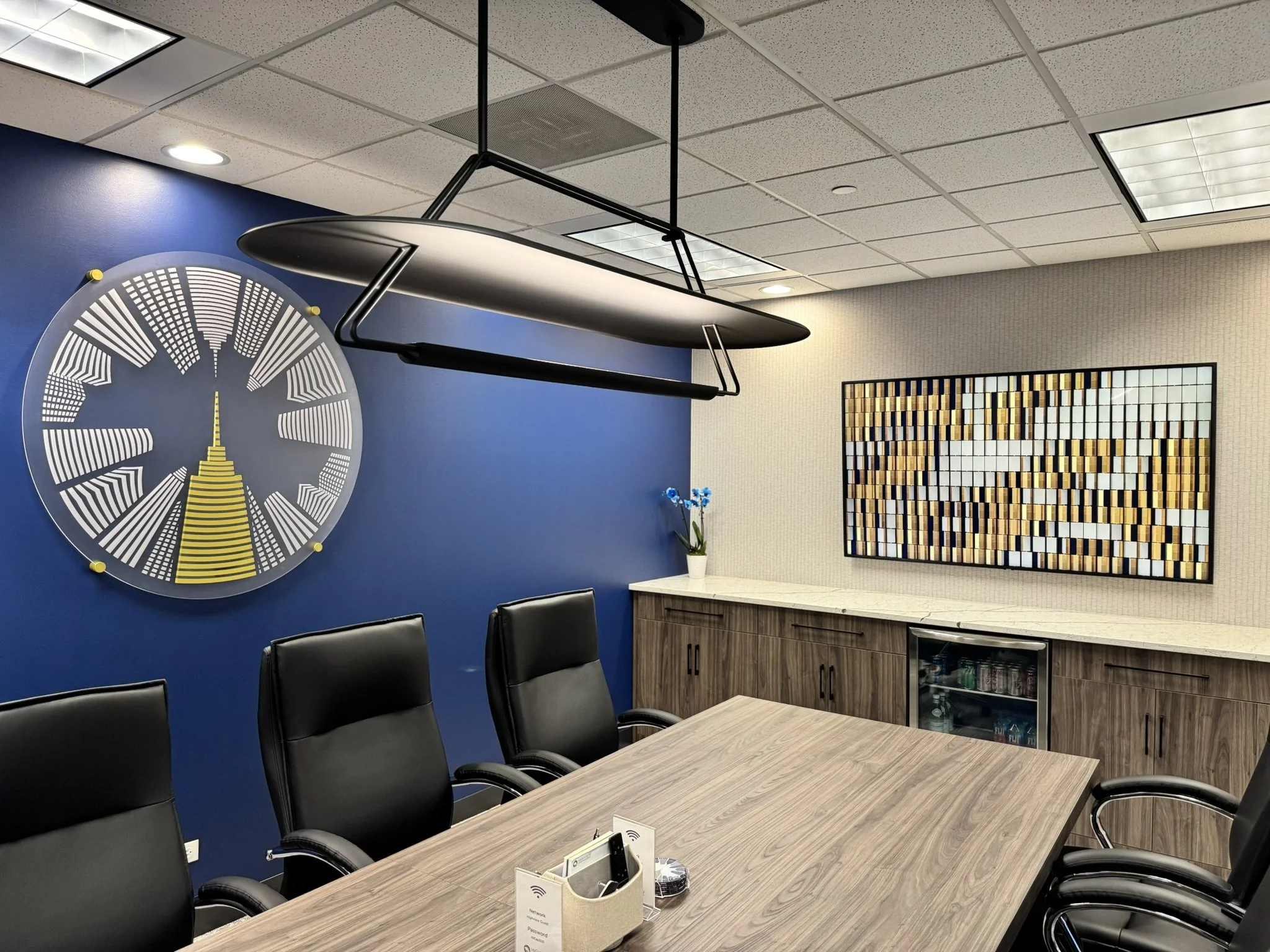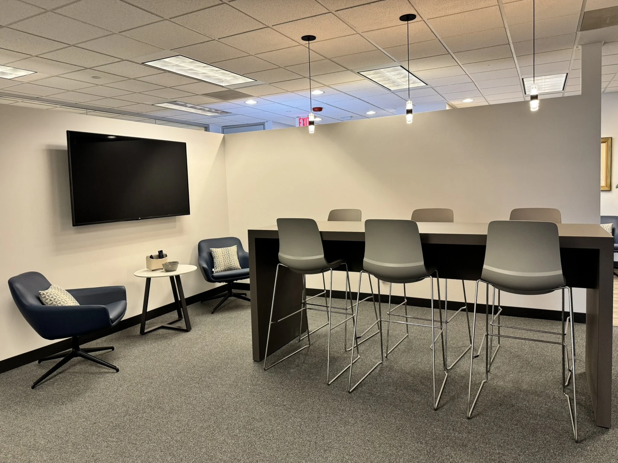 The client brought in Rieke Interiors to enhance their workspace. We updated the conference room and added a huddle area in the previously open space, creating a flexible spot for quick team meetings or focused work. Together, these updates fostered a functional, modern, and collaborative atmosphere for the financial office.