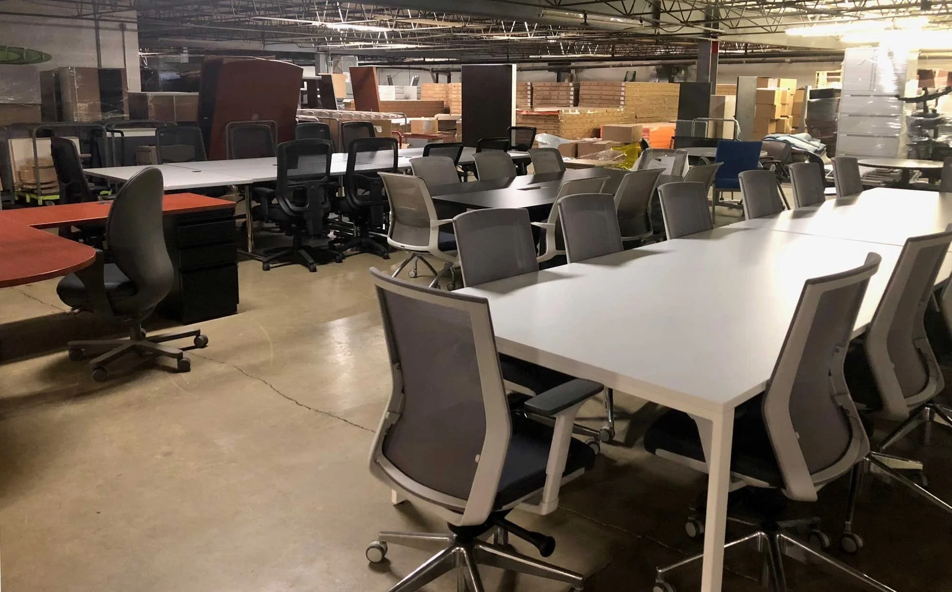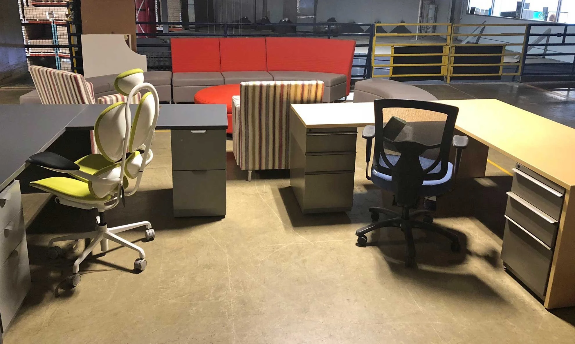 All furniture is in-stock and ready for your office now; delivery and installation upon request. Our selection changes frequently, so stop by today!
